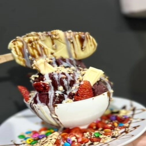 Milk-Shake cremoso de chocolate, sorvete de massa, kinder bueno, biscoito bauduco, calda de chocolate ao leite e sorvete... Ver completo