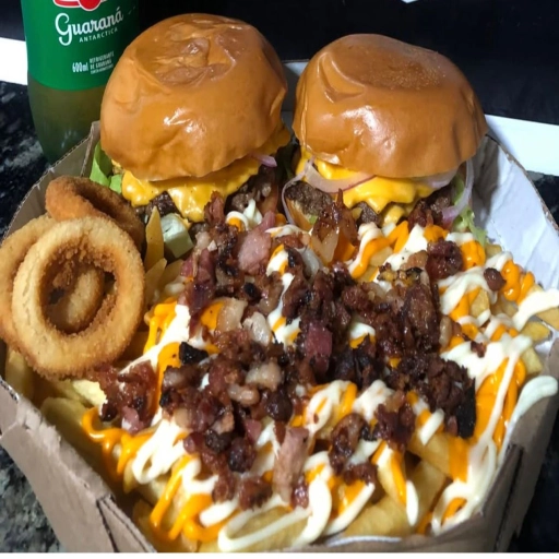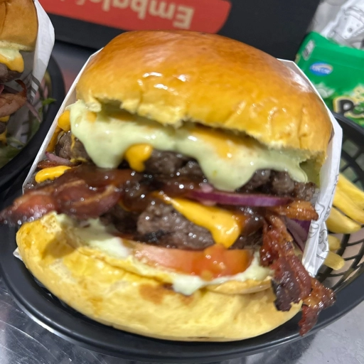 Pão de brioche, 2 smashs de 75gr, bacon, queijo cheddar, maionese da casa, barbecue, cebola roxa e toma... Ver completo