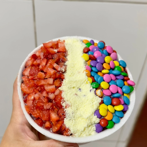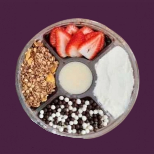 Açaí - morango - cobertura de chocolate - magno opcional - leite condensado e leite em pó