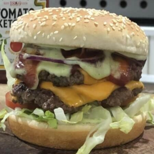 Pão de brioche, 2 smashs de 85gr, bacon, queijo cheddar, catupiry original, cheddar melt maionese da casa e tomate.