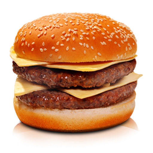 Pão, 2 hambúrgueres, 2 fatias de queijo cheddar, cheddar cremoso, maionese da casa e molho rose.