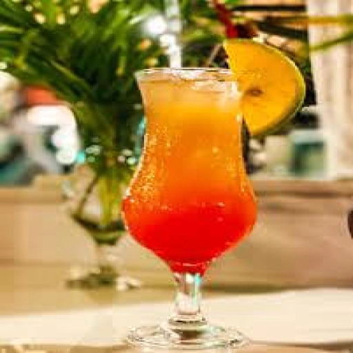 vodka, suco de pêssego, suco de laranja, groselha e gelo.